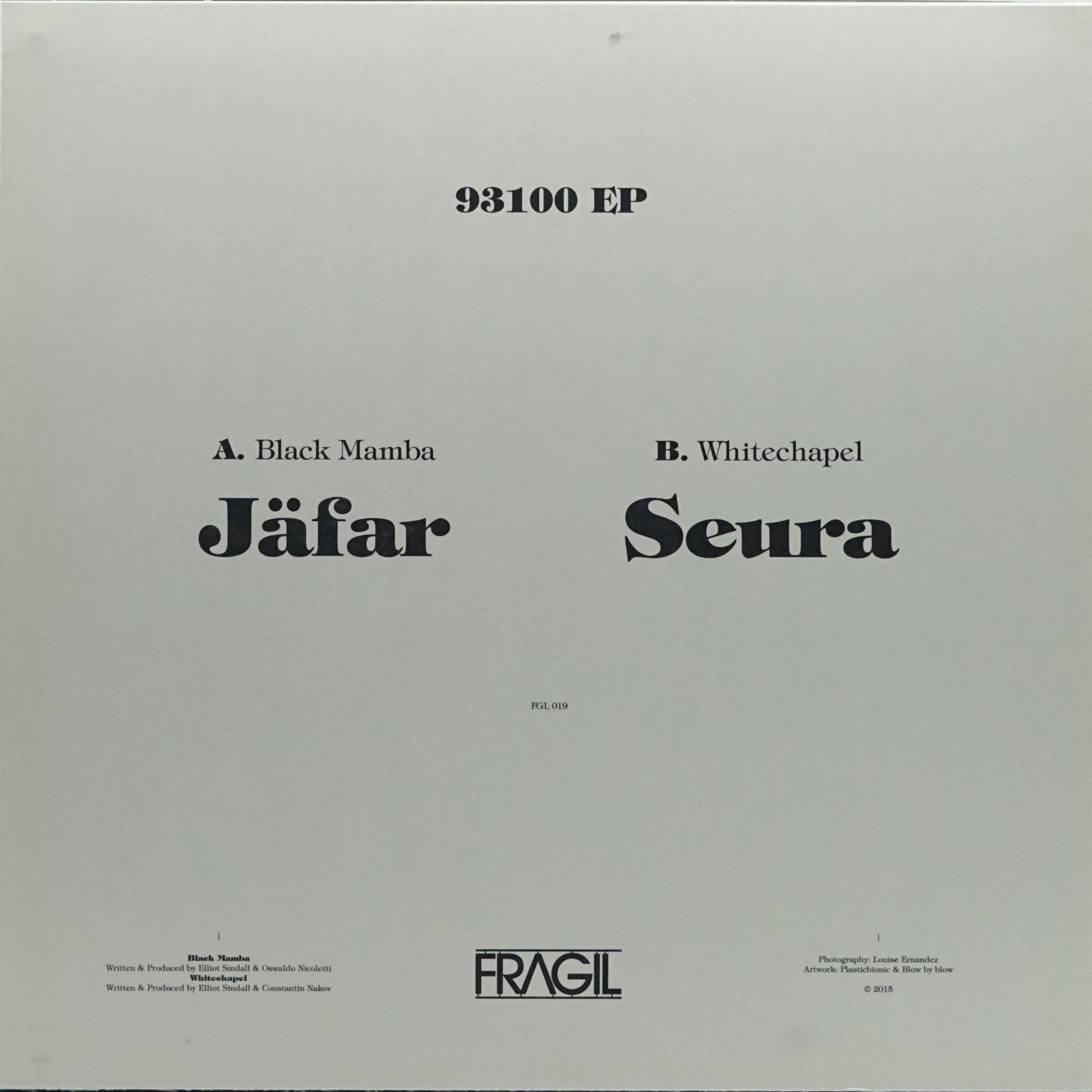 Jäfar (Elliot Sindall & Oswaldo Nicoletti) make a rapid return to the label and are back to grace the A Side of Fragil 019, while Elliot Sindall one half of the duo also pairs up with Constantin Nakov as Seura on the flip.