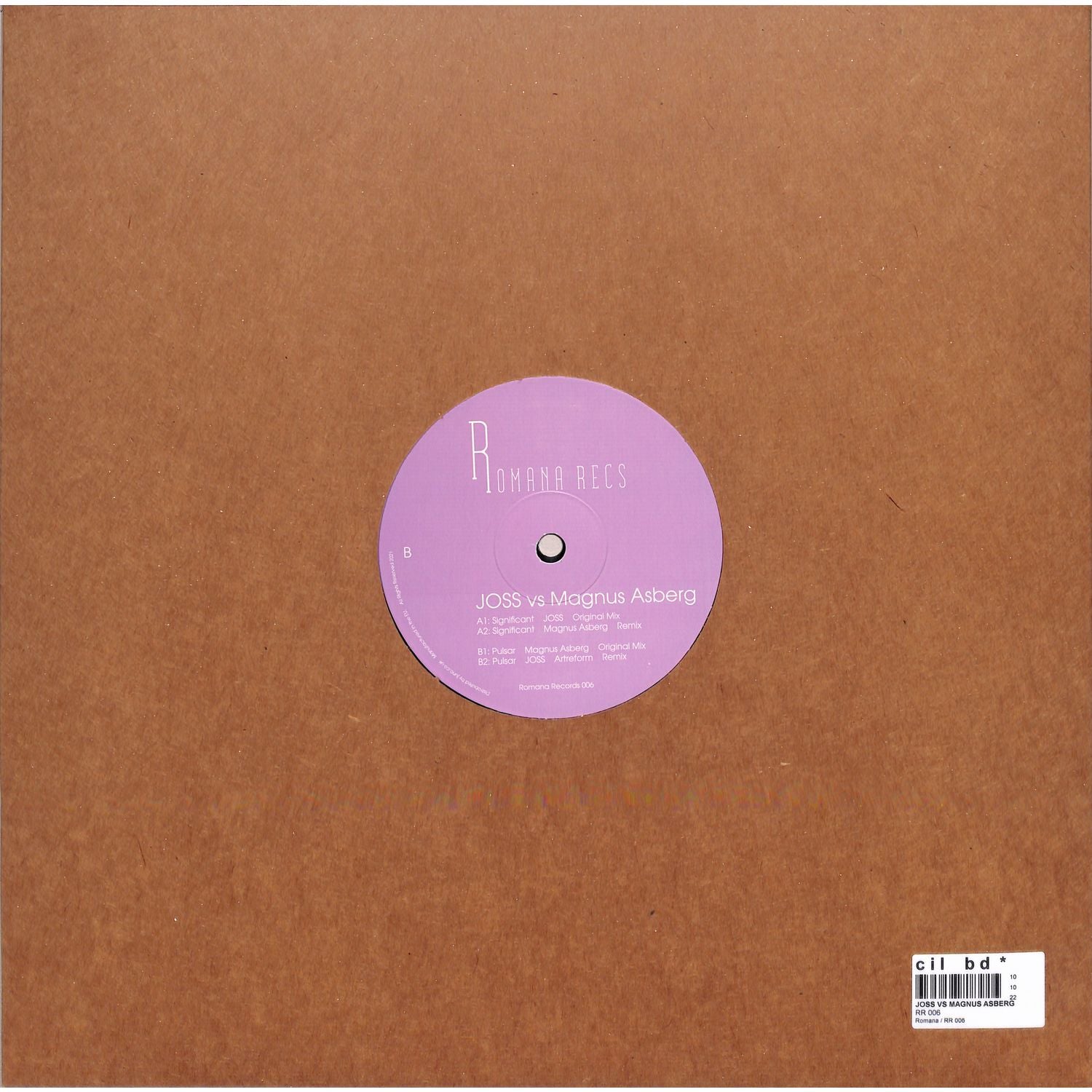 Title: Significant / PulsarArtist: JOSS, Magnus AsbergLabel: Romana RecordsGenre: Deep House, Tech House, MinimalCatalog number: RR006Format: 12"Condition: Media: Near Mint / Sleeve: Very Good Plus